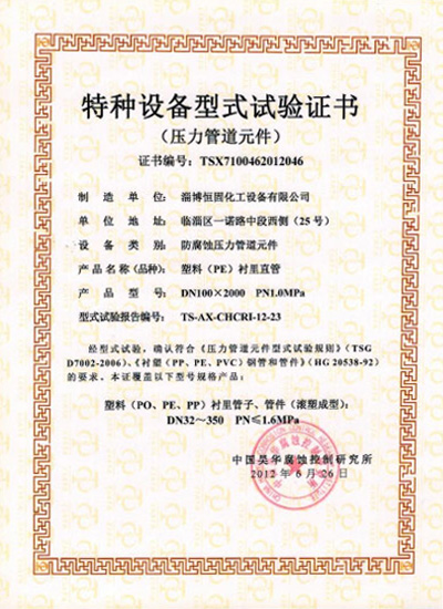 公司擁有健全的質(zhì)量保證體系。完善的檢測(cè)手段,并嚴(yán)格按照ISO9001:2008國(guó)際質(zhì)量體系和特種設(shè)備制造許可的規(guī)范,進(jìn)行生產(chǎn)制造。恒固牌聚四氟乙烯焊接板襯工藝技術(shù),管道、管件、管道設(shè)備的整體四氟模壓成型,波紋補(bǔ)償器防腐,管道緊襯拉管,四氟噴涂,襯塑滾涂,閥門(mén)F46擠出等技術(shù)處于先進(jìn)水平。